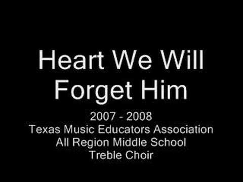 Heart We Will Forget Him }}- From the TMEA All Region Middle School Treble Choir -- Another sad love story. It's pretty mellow and it really gets an uprise around the end. I also loved ...